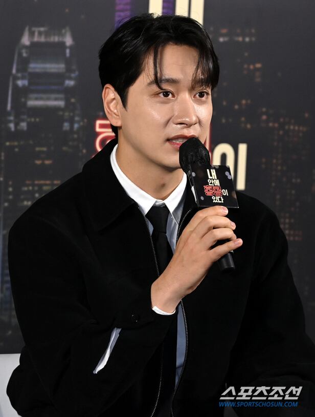 23일 용산 CGV에서 열린 영화 '내 안에 홍콩이 있다'의 쇼케이스, 황찬성이 인사말을 하고 있다. '내 안에 홍콩이 있다'는 어느 날 느닷없이 잠옷 차림으로 홍콩에 떨어진 혜림이 기억을 더듬어 한 가게를 찾아가고 그 곳에서 첫 사랑 찬성을 만나지만 무슨 짓을 해도 현실로 돌아갈 수 없어 최후의 수단을 시도하는 LOVE 판타지. 허상욱 기자wook@sportschosun.com/2023.11.23/