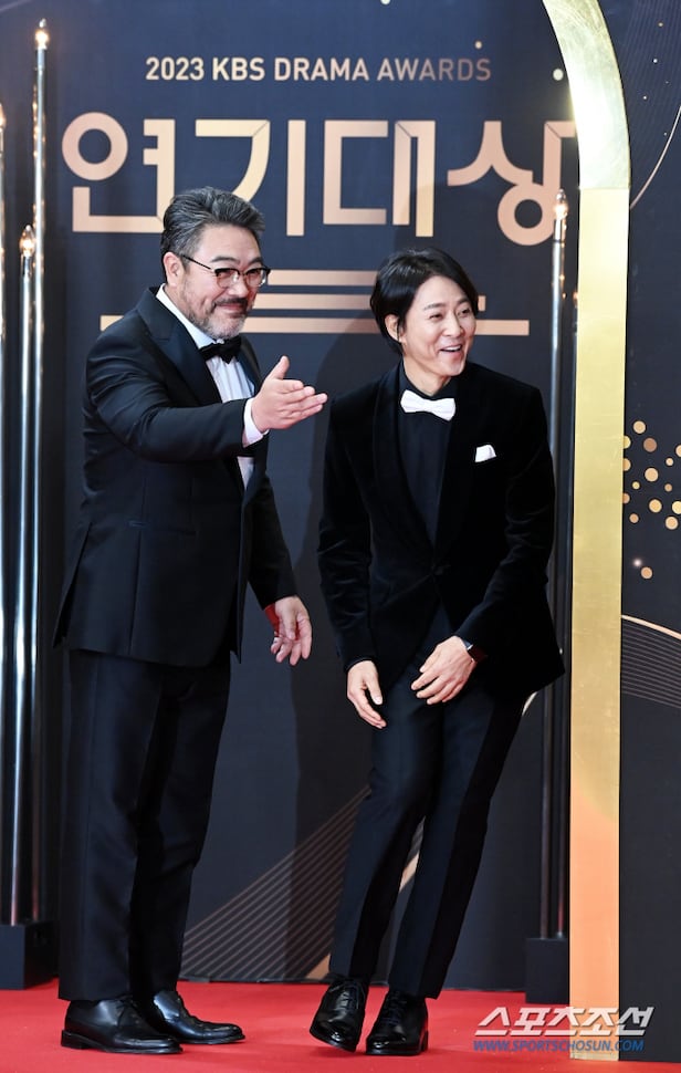 2023 KBS 연기대상이 31일 서울 여의도 KBS에서 열렸다. 최수종과 이원종이 시상식 전 열린 레드카펫에서 포토타임을 갖고 있다. 여의도=허상욱 기자wook@sportschosun.com/2023.12.31/