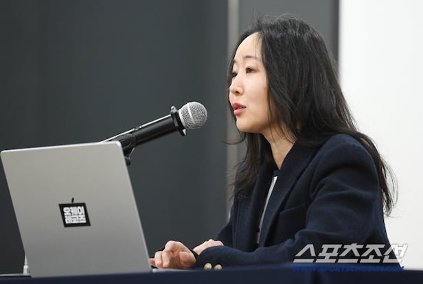 민희진이 25일 오후 서울 종로구 교원챌린지홀에서 기자회견을 열였다. 민희진이 입장문을 낭독하고 있다. 10분 늦게 회견장에 입장한 민희진이 입장문만을 낭독한 후 질의 응답 시간없이 일방적으로 퇴장했다. 정재근 기자 cjg@sportschosun.com/2026.2.25/
