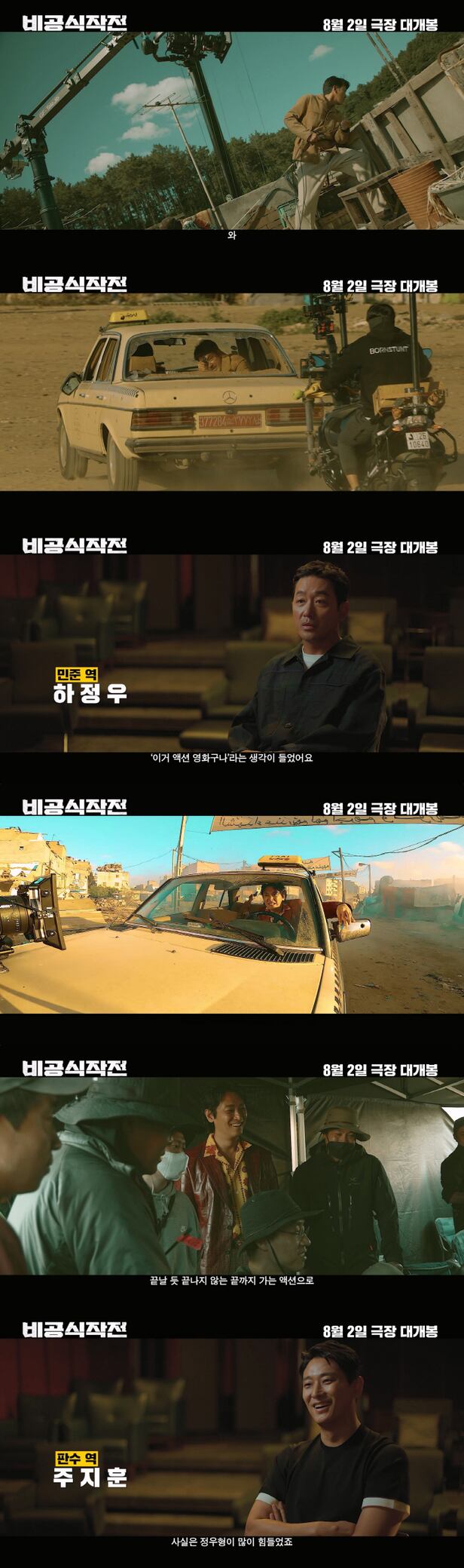 또한, "인물의 이야기와 감정이 잘 담겨 있도록, 설득 가능한 액션을 다이내믹하게 연출하는 것이 목표였다"는 김성훈 감독의 말처럼, 영상은 민준과 판수의 질주를 가장 가까이서 담아낸 제작진의 노고를 고스란히 담아냈다. 스크린에서 펼쳐지는 이들의 짜릿한 여정은 관객들에게 마치 판수의 택시에 함께 타고있는 듯한 쾌감을 선사할 것이다.