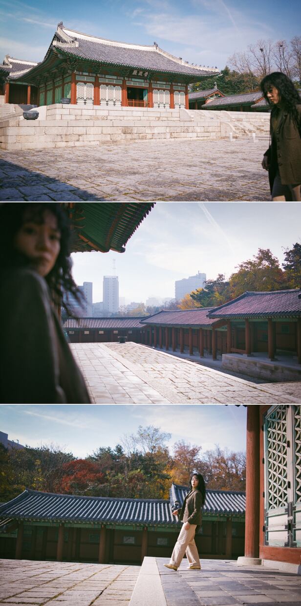 고즈넉한 고궁의 전경과 특유의 꽃살 무늬 창살 그리고 바닥에 내리쬐는 햇살이 그려주는 그림자는 '싱글 인 서울' 만의 특별한 감성을 전한다. 또한 계속해서 사진의 끄트머리에 걸쳐진 현진의 모습은 관객들에게 유쾌하고 사랑스런 '싱글 인 서울'의 분위기를 떠올리게 만든다.
