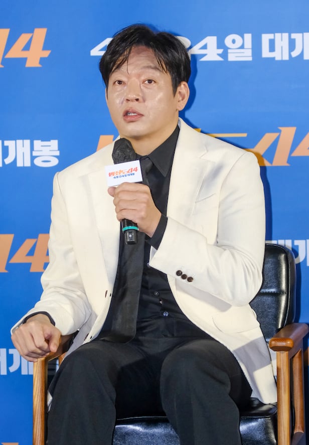 박지환은 11일 오전 서울 성동구 메가박스 성수에서 열린 영화 '범죄도시4' 제작보고회에서 "처음 제안이 들어왔을 때 2편만큼 부담이 컸다"라고 했다.