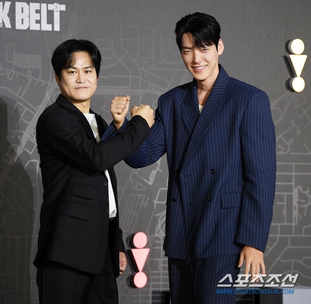 10일 오전 서울 광진구 자양동 롯데시네마 건대입구점에서 넷플릭스 범죄 액션 영화 '무도실무관'(김주환 감독, 클라이맥스 스튜디오·세븐오식스 제작) 제작보고회가 열렸다. 이날 제작보고회에는 태권도·검도·유도 도합 9단의 무도 실력을 갖춘 실무관 이정도 역의 김우빈, 안전한 사회를 만들기 위해 최선을 다하는 보호관찰관 김선민 역의 김성균, 그리고 김주환 감독이 참석했다.