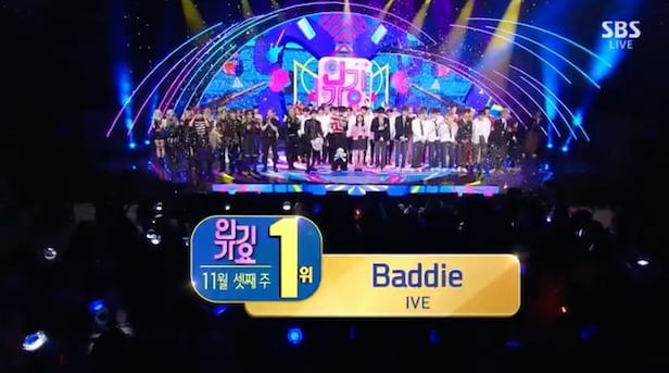 19일 오후 방송된 SBS ‘인기가요’에서는 AKMU와 제니, 아이브가 1위 후보에 오른 가운데 아이브가 1위 트로피를 차지했다.