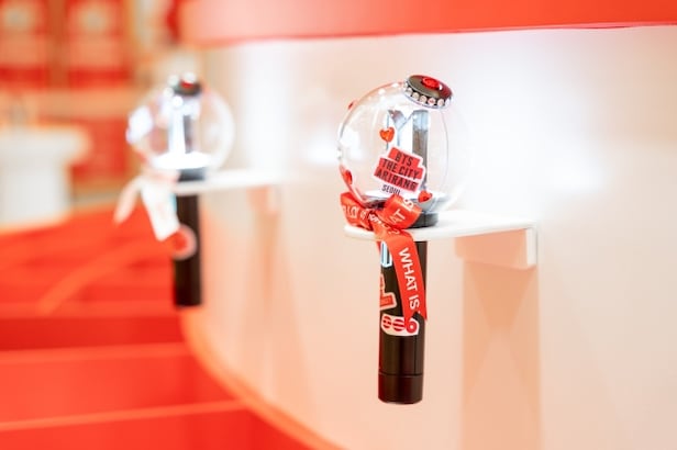 체험형 프로그램의 인기도 뜨겁다. ‘CUSTOMIZE YOUR 아리랑’에서는 자신만의 감성으로 티셔츠와 응원봉을 디자인할 수 있다. 방문객들이 티셔츠와 응원봉에 앨범 테마 스티커를 붙이고 각자의 문구로 취향을 입히느라 여념이 없다. ‘아리랑’의 이야기를 직접 완성하는 참여형 전시도 한창이다. ‘FILL YOUR LOVE SONG’ 존에서는 붉은 공에 자신의 최애곡과 가사를 적는다. 공을 한데 모아 거대한 앨범 로고를 완성하며 실시간으로 전시를 만들어간다. 수록곡 가사를 탐색해 엽서로 간직하는 ‘KEEP YOUR LOVE SONG’, ‘더 시티 서울’ 전용 프레임으로 사진과 포토카드를 제작하는 ‘CAPTURE YOUR MOMENT’ 부스는 축제의 순간을 기록하는 사람들로 가득하다.