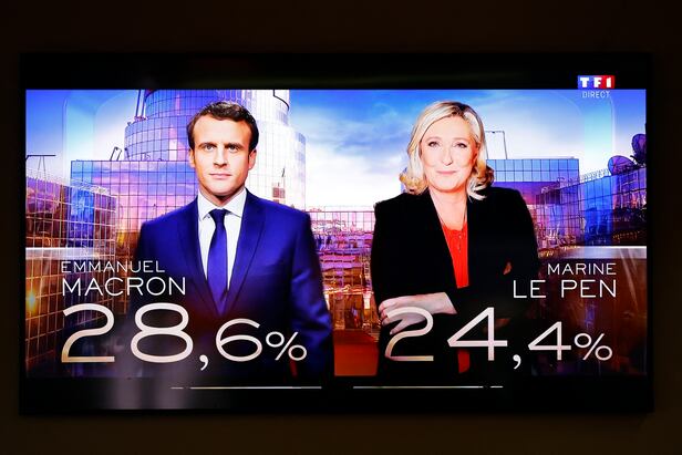프랑스여론연구소(Ifop)는 이날 마크롱 대통령이 28.6%, 르펜 후보가 24.4%의 득표율을 거둘 것으로 예상했다. 프랑스 여론조사기관 엘라브는 마크롱 대통령 28.5%, 르펜 후보 24.2%의 득표율을 전망했고, 또 다른 여론조사기관 입소스와 소프라-스테리아는 마크롱 대통령이 28.1%, 르펜 후보가 23.3% 득표율로 결선에 진출할 것으로 예측했다.