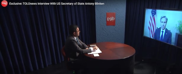 카불 함락과 탈레반 장악 후 숱한 국내외 매체와 인터뷰를 가지면서 미국의 입장을 강변해오던 블링컨 장관이 8일(현지 시각) 아프가니스탄 현지 매체와 처음으로 가진 인터뷰에서 잇따라 날아오는 돌직구성 질문에 답변하느라 진땀을 뺐다. 톨로뉴스는 카불에 본사를 두고 있는 아프가니스탄의 24시간 TV뉴스 채널이다.