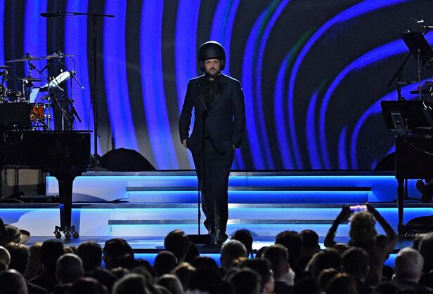 미국 최고 권위 음악 시상식인 그래미 어워즈 무대에 ‘헬멧 패션’이 등장했다. 최근 아카데미 시상식에서 진행자의 뺨을 때려 논란이 된 할리우드 배우 윌 스미스를 풍자한 것이다.