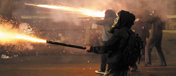 조지아 정부가 유럽연합(EU) 가입을 위한 EU와의 협상을 2028년까지 중단하기로 결정하자 이를 규탄하는 대규모 반정부 시위가 엿새째 이어지고 있다. 친러시아 성향인 여당과 친유럽인 야당의 정치적 충돌이 EU 가입 문제를 두고 터져 나왔다는 분석도 나온다. 4일 조지아 트빌리시에서 반정부 시위대가 방독면 등 보호 장구를 착용하고 경찰을 향해 폭죽 불꽃을 발사하는 모습.