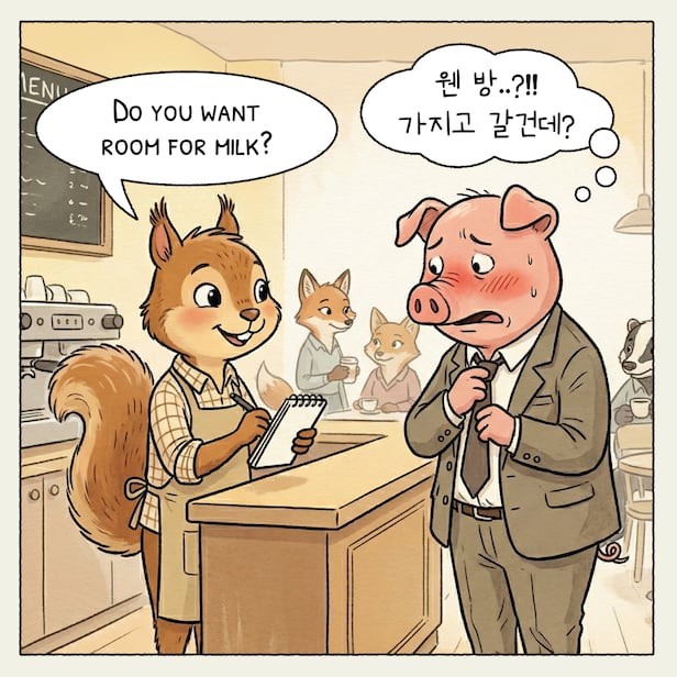 블랙커피를 시키자... "room이 필요하세요?"