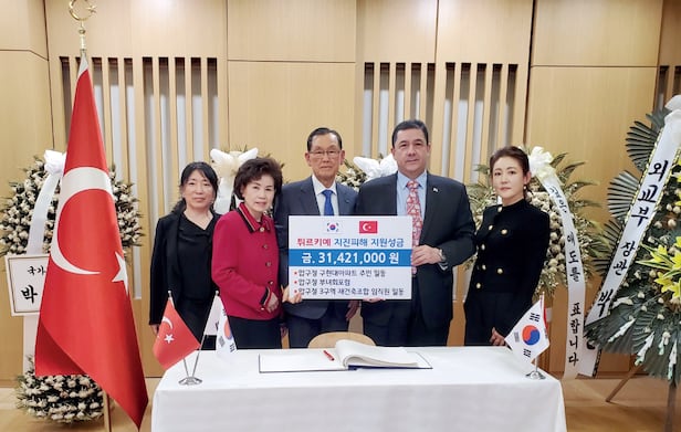 서울 강남구 압구정 구현대아파트 주민들이 지진 참사로 고통을 겪고 있는 튀르키예 국민들을 돕기 위해 모은 구호 성금 3142만원을 7일 주한 튀르키예 대사관에 전달했다.