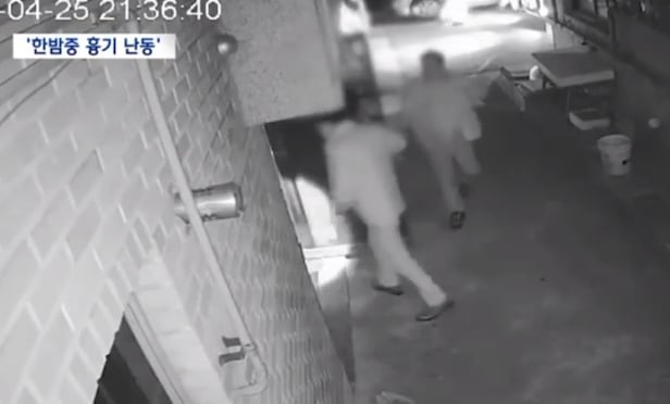 목격자 신고를 받고 경찰이 출동하자, A씨는 이를 피해 자기 집 옥상으로 도주했다가 이웃집 옥상으로 건너갔다. 이후 경찰과 50여 분간의 실랑이를 벌인 끝에 외벽 배관을 타고 1층으로 내려왔다. A씨는 이 과정에서 흉기를 여러 차례 휘두르다 결국 경찰이 쏜 테이저건을 맞고 현행범 체포됐다.