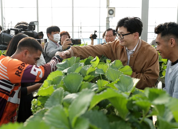 이날 한 장관은 외국인 계절근로자를 고용한 딸기농장을 찾았다. 요즘 농촌에선 일손 부족으로 외국인 근로자 없이는 농사가 불가능한 상황이다.
