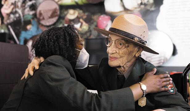 지난 16일(현지 시각) 미 캘리포니아주 리치먼드 리벳공 로지 박물관에 모여있던 300여 명의 주민들은 이날의 주인공이 등장하자 열띤 환호와 박수로 맞았다. 미 국립공원관리청(NPS) 소속 현역 최고령 파크 레인저(국립공원과 역사 유적지의 순찰·관리원)로 일하면서 작년 8월 100살 생일을 맞았던 베티 레이드 소스킨. 빈민가 출신의 흑인 여성이라는 소수계 핸디캡을 딛고 미국 사회의 변화를 이끌어낸 보통 사람으로 국민적 사랑을 받았던 그의 은퇴식이 이날 열렸다.