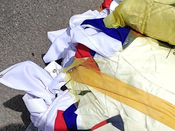 현충일인 6일 충북 청주시 한 도로변에서 태극기가 담긴 쓰레기봉투 더미가 발견돼 경찰이 조사에 나섰다.