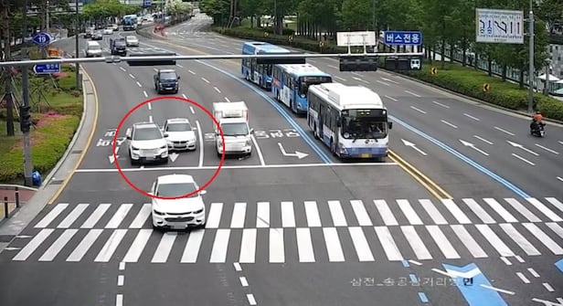 지난 5월 15일 오후 7시38분쯤 부산 동래구 사직동 지하철 3호선 사직역 부근 도로에서 BMW 승용차가 그에 앞서 급차선 변경을 하던 차를 들이받았다. 이런 경우 거의 모든 과실 책임이 앞서 가다 갑작스런 진로변경을 한 차량에 있는 것으로 알려져 있다.