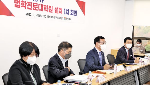 경남도는 지난 10월 도내 우수 인재를 유치하고 외부 유출을 막기 위한 목적으로 ‘지역 인재 육성을 위한 TF’를 만들고 TF 안에 경남 로스쿨 설치 분과를 설치했다. 지난달 14일에는 로스쿨 분과 1차 회의를 열었다. 회의엔 최만림 경남도 행정부지사를 비롯해 경남 내 법학과 대학교수, 로스쿨 출신 변호사, 연구원 등 10여 명이 참석했다. 이들은 오는 27일 2차 회의를 가질 예정이다. 앞서 경남도는 지난 9월 경남연구원에 ‘경남형 로스쿨 설치 방안’을 연구 과제로 의뢰했다. 결과는 내년 2월쯤 나올 전망이다.