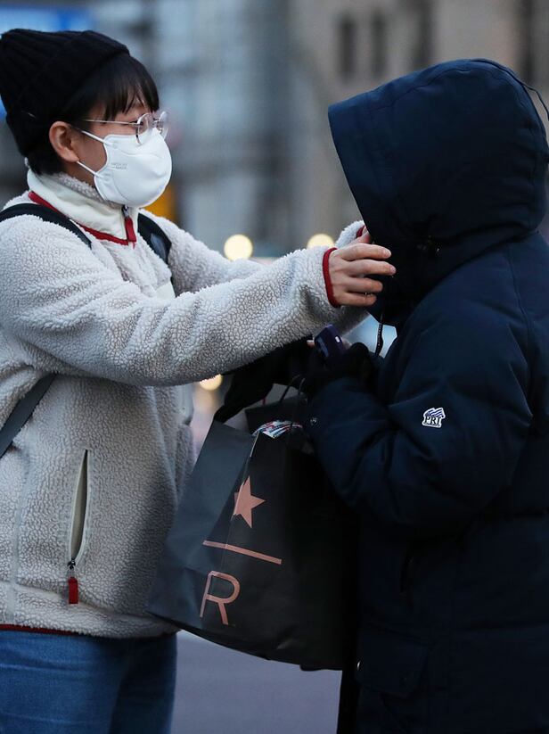 서울 지역에 한파주의보가 내려진 15일 오후 서울 종로구 광화문역 사거리에서 두꺼운 겨울옷을 챙겨 입은 시민들이 서로 퇴근을 서두르고 있다. 기상청은 16일 서울 아침 최저기온이 영하 11도, 체감온도는 영하 17도로 예보했다.