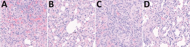 모든 개에게서 체중 감소나 발열 등 코로나 감염의 임상 증상이 보이지는 않았지만 폐에서 감염 합병증인 바이러스성 폐렴 증상이 확인됐다. 개의 콧물을 통해 코로나 바이러스가 배출됐으며, 개들끼리 직접 접촉하면서 건강했던 정상견도 바이러스에 감염된 것으로 나타났다.