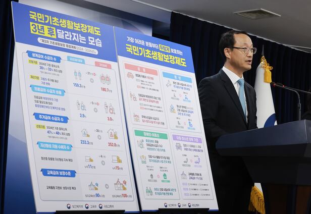보건복지부는 19일 이 같은 내용을 담은 ‘제3차 기초생활보장 종합계획(2024~2026년)’을 발표했다. 정부는 생계급여 선정 기준을 현행 ‘기준 중위소득(모든 가구를 소득 순으로 세웠을 때 가장 중간에 있는 가구 소득)’의 30%에서 내년 32%로 높이고 2026년에는 35%로 올리기로 했다. 이렇게 되면 올해 159만3000명인 수급자는 2026년 180만7000명으로 늘어나게 된다. 어려운 사람에게 더 주는 ‘약자 복지’ 강화 차원이다.