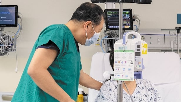 환자들 대부분은 고령이었다. “아버님 ‘아’ ‘에’ 해보세요. 정말 좋아졌네요.” “어머님 오늘 퇴원하신다고 깨끗이 씻으셨네. 외래에서 봬요.” 그는 일반병동 환자를 살핀 뒤 바로 4층 응급중환자실로 내려갔다. 그가 환자 상태를 살피고 지시를 내리자, 젊은 전공의들이 받아적었다. 양 교수는 “얼마 전에 제가 코피를 쏟았는데, 그 얘길 듣고 (사표 냈던) 제자 두 명 돌아와 중환자실을 지키고 있다”고 했다. 현재 이 병원 전공의 36명 중 15명이 근무를 하고 있다.