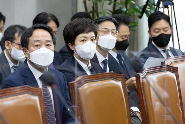 앞서 지난 8일 국회 운영위원회 국정감사에선 대통령실 김은혜 홍보수석과 강승규 시민사회수석이 메모지에 ‘웃기고 있네’라고 적은 뒤 지우는 모습이 언론 카메라에 포착됐다. 논란이 일자 위원장인 주 원내대표는 두 사람을 내보냈다.
