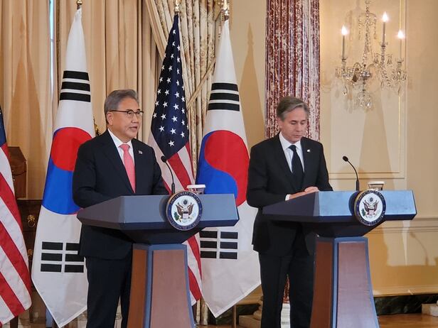 이날 회담은 당초 예정된 시간(45분)보다 길어진 약 70분 동안 진행됐다. 블링컨 장관은 최근 한국 내에서 자체 핵무장 여론이 고개를 들고 미국의 핵우산에 대한 신뢰도가 낮아지는 상황과 관련, “우리는 확장 억제를 매우 진지하게 받아들인다”며 “핵과 재래식 무기, 미사일 방어 체계를 포함한 모든 자산을 이용해 한국을 방어할 것을 약속한다”고 했다. 한미는 “중국이 북한의 행동에 영향을 끼칠 분명한 능력과 이를 행사할 책임이 있다”는 데도 동의하며 중국이 역할을 해줄 것을 압박했고, 한·미·일 3국의 안보 협력 강화 방안을 논의했다.