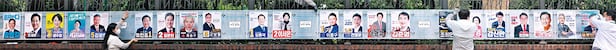 6·1 지방선거 공식 선거 운동이 시작된 19일, 선거관리위원회 관계자들이 서울 종로구 대학로에서 선거 벽보를 부착하고 있다. 이번 선거의 경우 전국 대다수 지역(세종·제주 제외)에서 유권자 1명이 투표할 용지는 7장이다. ▲시·도지사 ▲구·시·군의 장 ▲교육감 ▲시·도 의원 ▲광역의원 비례대표 ▲구·시·군 의원 ▲기초의원 비례대표 후보를 뽑아야 하기 때문이다. 국회의원 보궐선거가 열리는 7곳은 용지 1장이 추가된다.