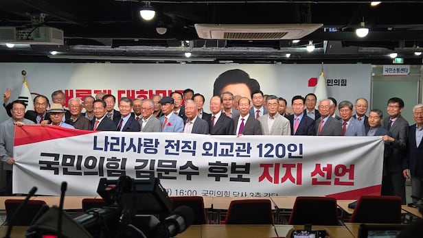 보수성향 전직 외교관들의 모임인 ‘나라사랑전직외교관모임’(공동대표 이재춘·조원일·송종환)은 이날 오후 4시 서울 여의도 국민의힘 중앙당사에서 기자회견을 열고 “김 후보는 공직자로서 탁월한 업무 수행 능력과 공정성을 입증했고, 본인의 청렴성과 개인적 신뢰도까지 더해 앞으로 대한민국을 이끌고 외교를 지휘할 적임자임이 분명하다”고 밝혔다.
