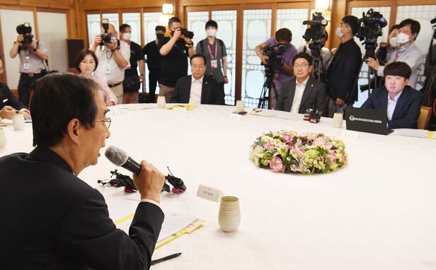 이날 오전 서울 삼청동 총리공관에서 진행된 협의회에 앞서 한 총리가 과일 주스로 “윤석열 정부”를 외치자 참석자들은 “한마음”이라고 따라 외치며 옆 사람과 잔을 부딪쳤다. 정부 측에선 경제 위기 대응을 위한 당정의 협력과 함께 국회의 적극적인 역할을 주문했다. 한 총리는 “중·장기적으로 성장 잠재력과 경제 생산성을 높이기 위해 규제 혁신과 제도 선진화를 고통스럽지만 해나가야 한다”며 “이를 위해 당정 간 원 팀으로서의 협력(이 필요하다)”이라고 했다. 김대기 대통령비서실장도 “국회가 너무 강해졌고, 경제 정책 추진에 국회와의 소통이 매우 중요하다고 느낀다”고 했다.