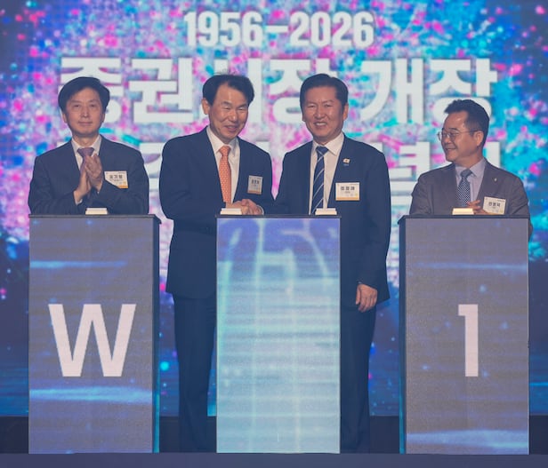 이날 증권시장 개장 70주년 기념행사에는 정 대표 외에 오기형 코리아프리미엄 K-자본시장특위 위원장, 민병덕·김영환·김현정·박홍배·박해철·이강일 의원 등 민주당 인사들이 다수 참석했다.