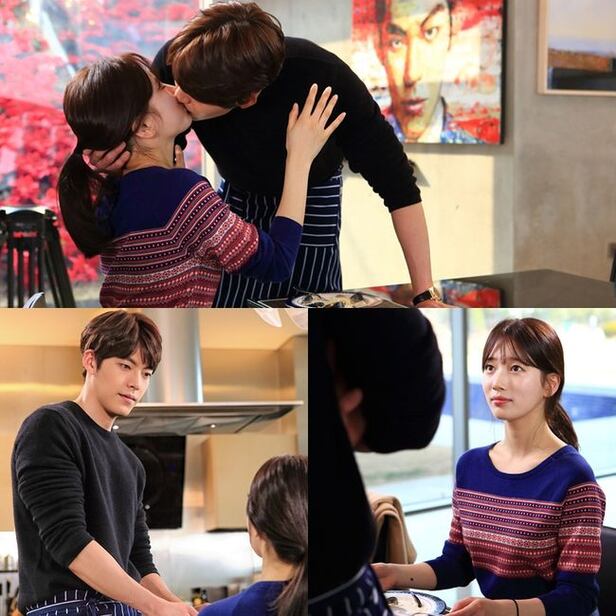 특히 두 사람은 심장이 터질듯한, 설렘이 묻어나는 키스신을 위해 진지하게 몰입하던 중 웃음보가 터지는 바람에 NG가 발생하기도 했다. 김우빈의 키스를 받은 배수지가 입안에 파스타가 있다는 제스처를 취하며 감정을 한껏 끌어올리더니 자신도 모르게 웃어버렸던 것. 애교 넘치게 “죄송합니다”를 외치는 배수지의 사과에 김우빈이 장난스럽게 화난 듯 반응하면서 촬영장은 웃음으로 물들었다. 리허설부터 달달한 ‘꿀케미’를 쏟아낸 두 사람의 쫀쫀한 ‘커플 호흡’과 현장의 화기애애한 분위기가 색다른 ‘키스 명장면’을 완성시켰다.