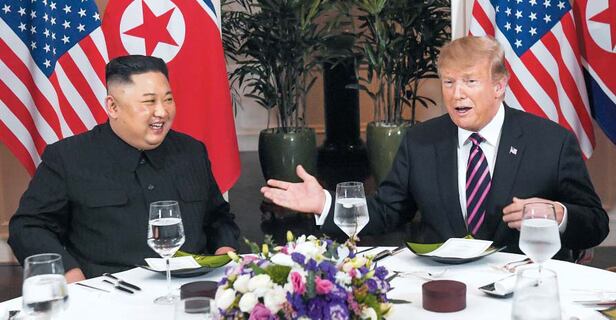 도널드 트럼프 미국 대통령과 김정은 북한 국무위원장은 27일 베트남 하노이의 소피텔 레전드 메트로폴 호텔에서 2시간 넘게 친교 만찬 회동을 갖고 1박 2일간의 '핵 담판'에 들어갔다. 두 정상의 만남은 작년 6월 12일 싱가포르에서 열린 첫 미·북 정상회담 이후 260일 만이다.
