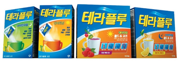 현재 테라플루는 국내에서 4가지 종류의 제품을 선보이고 있다. 테라플루 데이타임, 나이트타임과 지난해 8월 새로 출시된 테라플루 콜드앤코프 데이타임 & 나이트타임이 그것이다. 테라플루 제품은 공통적으로 감기의 모든 증상(콧물, 코 막힘, 인후통(목구멍의 통증), 오한(춥고 떨리는 증상), 발열, 두통, 관절통, 근육통을 효과적으로 완화시켜 준다. 레몬향과 베리향, 허니레몬향이 첨가돼 감기약을 먹을 때 수월한 것도 특징이다.