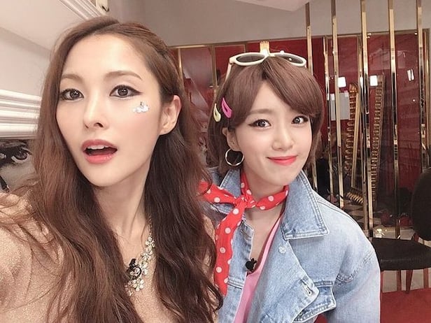 [OSEN=장우영 기자] 걸그룹 카라 멤버 박규리와 티아라 멤버 함은정이 만났다. ‘미스터’, ‘롤리폴리’ 메이크업을 선보이며 ‘탑골뷰티’를 뽐냈다.