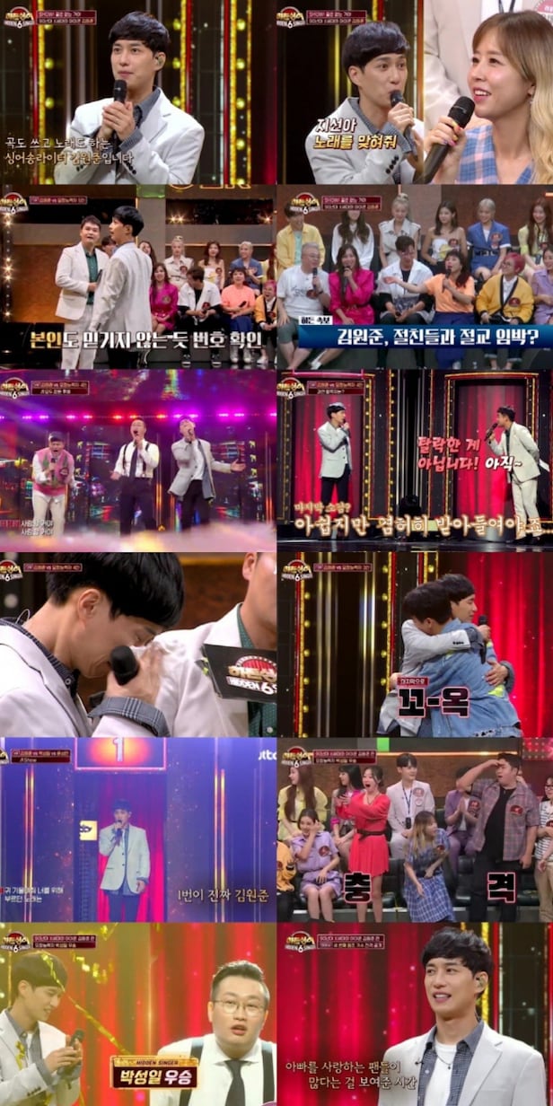[스포츠조선 조윤선 기자] JTBC '히든싱어6'(기획 조승욱, 연출 홍상훈 신영광)의 두 번째 원조가수 김원준이 엄청난 실력의 모창능력자들을 맞이해 분투한 끝에 우승을 내주며 '아름다운 기적'을 연출했다.