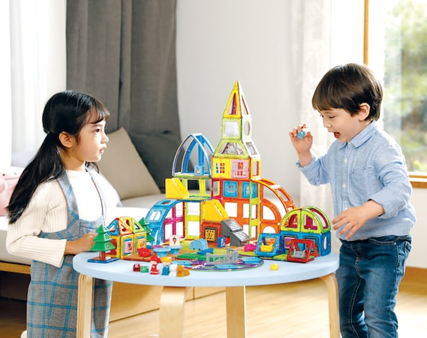 맥포머스의 올해 신제품인 ‘맥포머스 다이내믹 빌더 세트’는 더욱 다양한 역할놀이와 스토리텔링이 가능하다. 빛이 나오는 로봇이나 반짝이는 보석함 등 다양한 테마 조형물을 만들 수 있는 360도 회전 LED 블록, 역대 최다 수량인 새로운 미니 피규어 7종, 미니 피규어에 끼울 수 있는 헬멧·모자 액세서리 3종 등이 담겼기 때문이다.