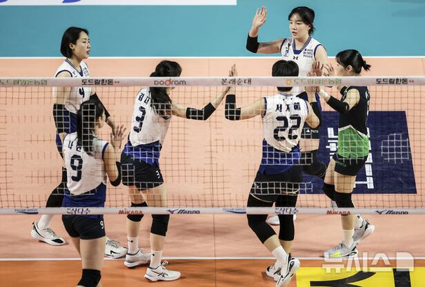 이날 경기 에이스 역할을 맡은 정윤주는 16득점을 올렸다. 임혜림은 10득점을 거들었다.