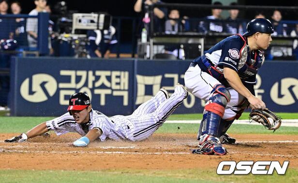 0-2로 뒤진 8회 LG는 1사 후 오스틴의 솔로 홈런으로 추격했다. 문보경이 중전 안타로 출루하자, 최승민이 대주자로 출장했다. 오지환의 우전 안타로 최승민은 3루까지 진루했다.