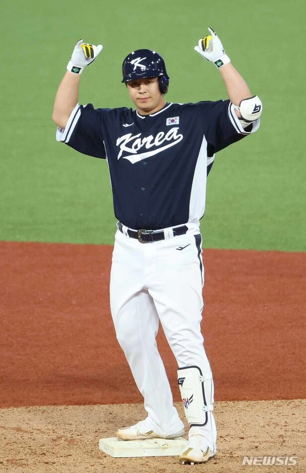 항저우 아시안게임에 이어 대표팀 주전 유격수로 활약한 김주원은 이번 대회 4경기에서 14타수 6안타, 타율 0.429로 맹타를 휘둘렀다. 특히 대만전에서는 2루타, 3루타를 1개씩 때려내며 4타수 3안타 1타점으로 펄펄 날았다.