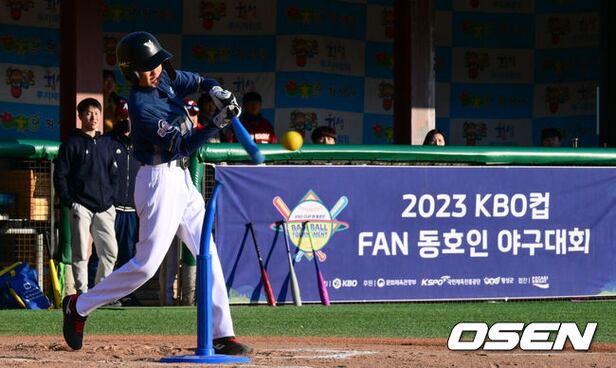 NC(에어포스)는 18일 강원도 횡성군 횡성베이스볼파크 B구장에서 열린 ‘2023 KBO컵 FAN 동호인 야구대회’ 8강전에서 키움(파수 언터쳐블)을 상대로 14-1 5회 콜드승을 거뒀다. 이날 경기는 가족들이 함께 야구를 즐길 수 있는 기회를 주기 위해 10번타순에는 어린이 선수, 11번타순에는 여자선수가 티볼을 치는 것으로 경기에 참여했다.