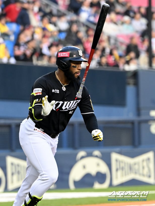 1회초 로하스 김민혁의 연속 안타로 만든 1사 1,2루에서 장성우가 원태인의 직구를 가볍게 밀어 우전 적시타로 선취점을 뽑했다.