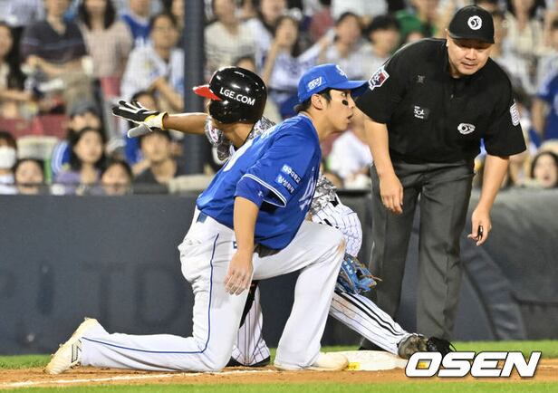 [OSEN=잠실, 한용섭 기자] 프로야구 LG 트윈스 염경엽 감독은 신인 김대원의 3루 도루를 칭찬했다.
