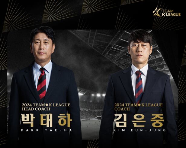 박태하 포항 스틸러스 감독이 홍명보 축구대표팀 감독을 대신해 팀 K리그를 지휘한다. 코치는 김은중 수원FC 감독이다.