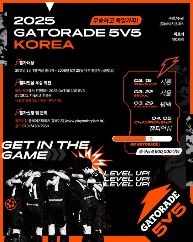 대한민국 최고의 아마추어 중학생 풋살 대회인 '2025 게토레이 5v5 코리아'가 3월 시작된다.