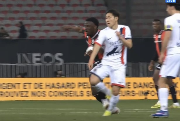 충격적인 장면이 있었다. PSG가 2-0으로 앞서던 후반 13분이었다. 이강인이 탈압박하는 순간이었다. 순간적으로 이강인을 놓친 니스의 유수프 은다이시미예가 뒤에서 급하게 태클을 걸었다. 이강인의 왼발목을 밟은 심각한 상황이었다. 이강인은 그라운드에 쓰러져 한동안 통증을 호소했다. 일어선 뒤에도 절뚝일 정도로 심각했다. 심판은 곧바로 휘슬을 불었다. 비디오 판독(VAR)을 통해 은다이시미예에게 퇴장을 선언했다. 이강인은 3분 정도를 더 소화한 뒤 우스만 뎀벨레와 교체돼 벤치로 물러났다.