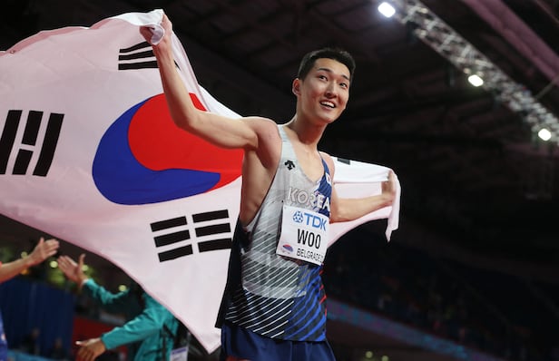 남자 높이뛰기 우상혁(26·국군체육부대)이 한국 육상 사상 처음으로 세계실내육상선수권대회 정상에 섰다.