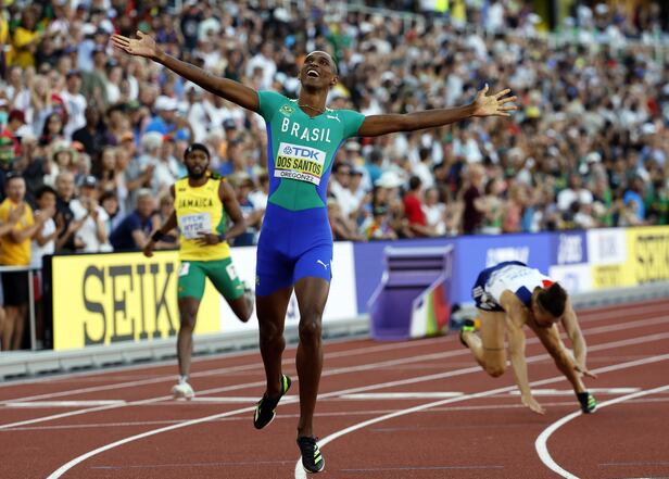 알리송 도스 산토스(22·브라질)는 이날 남자 400m 허들 결선에서 46초29로 금메달을 목에 걸었다. 케빈 영(미국)이 1993년 슈투트가르트 대회에서 세운 47초18을 0.89초 당긴 대회 신기록이다. 도스 산토스는 도쿄올림픽에서 동메달을 차지하며 이 종목 ‘신성’으로 떠올랐는데, 약 1년 만에 세계선수권에서 최강자인 바르홀름을 꺾고 정상에 오르며 본인의 미래를 밝혔다.