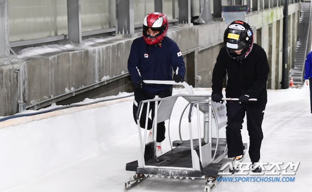 곧이어 밀라노올림픽 출전을 꿈꾸는 '스파이더맨' 헬맷의 홍승주와 '여고생' 구서영(16·리라아트고)이 각각 파일럿(앞자리)과 브레이크맨(뒷자리)으로 스타트대에 섰다. 신호음과 함께 "하낫! 둘!" 힘차게 발을 맞췄다. 홍승주의 폭발적인 질주, 뒤에서 밀던 구서영이 가볍게 썰매에 올라탔다. 4초092를 찍었다. 구서영은 "썰매를 밀어본 건 처음"이라면서 "선수분이 하드캐리했다. 뒤에서 미는데 전 그냥 끌려들어가는 느낌이었다. 선수라 확실히 다르다. 달리기도 정말 빠르고 힘도 엄청 세다"며 연신 감탄을 쏟아냈다. 홍승주는 "일반학생과 썰매를 타본 건 처음"이라면서 "잘 못탈까봐 걱정했는데 너무 잘 타더라"며 웃었다.