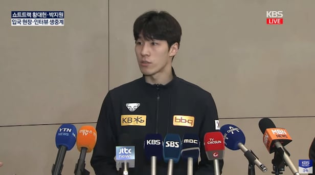 하지만 황대헌은 '박지원과 경기 후 따로 이야기 나눈 게 있나'라는 질문에 답을 하지 못한 채 옆에 서 있던 연맹 관계자를 슬쩍 바라봤다. 그러자 연맹 관계자가 나서서 "이거는 좀 답변하기 어려울 것 같다"고 대신 답하기도 했다. 따로 이야기를 나눈 게 있는지 여부를 답하기 어렵다는 것이 납득이 가지 않는 상황.
